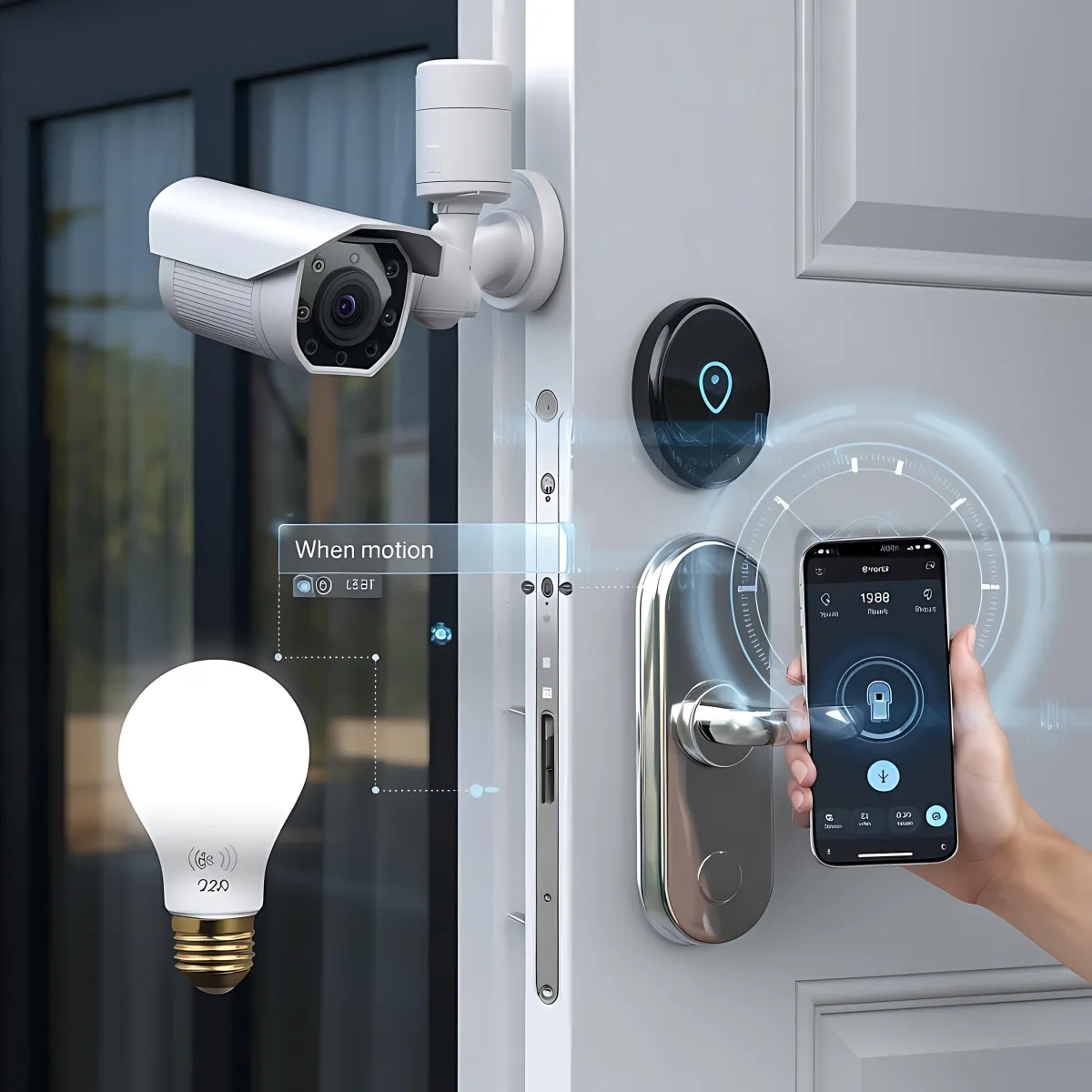 Yes, security integrates seamlessly with lighting, door locks, cameras, and other smart home systems. You can control everything through a single interface or set up automated security scenes.