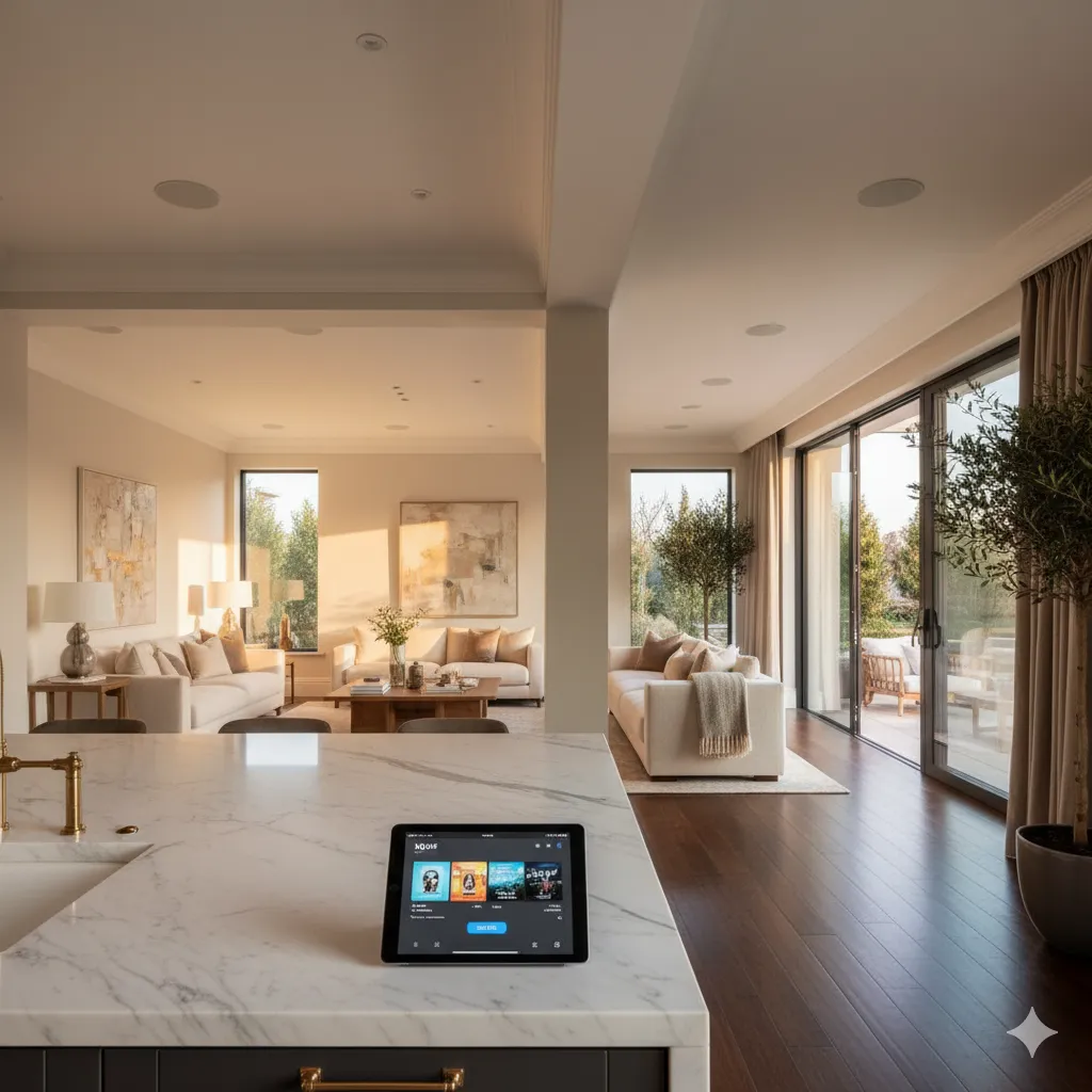Our whole-house systems deliver concert-quality performance through speakers that blend seamlessly into your architecture.